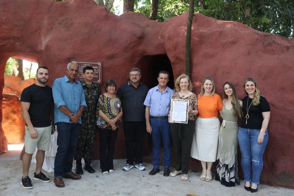 Os vereadores Adelino Alves, Antônio Bortoluci, Roberto Amor e Marta Murbach, participaram na tarde deste domingo, dia 11, da entrega de Moção de Aplausos à Maria Leny Scramin, diretora da Sede Regional do Centro do Professorado Paulista, em Osvaldo Cruz. A homenagem foi feita após um momento de oração na Gruta de Nossa Senhora de Lourdes, no Bosque do CPP.