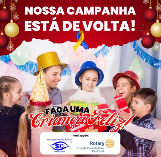 A ASD (Associação Síndrome de Down – Uma Nova Visão) e o Rotary Club de Osvaldo Cruz Califórnia realizam neste ano a campanha ‘Faça Uma Criança Feliz’.