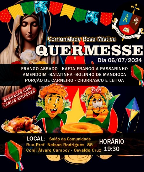 A Comunidade católica de Osvaldo Cruz realiza a tradicional Quermesse em Louvor a Nossa Senhora Rosa Mística.