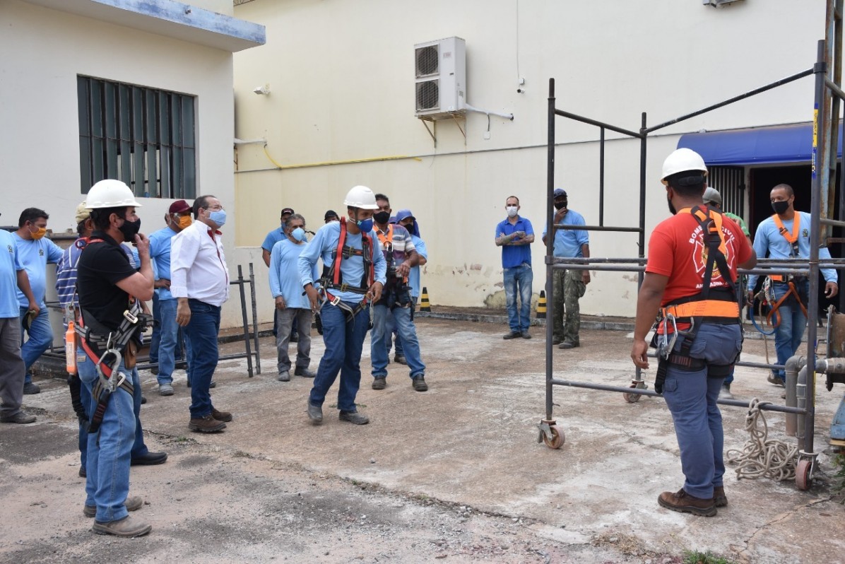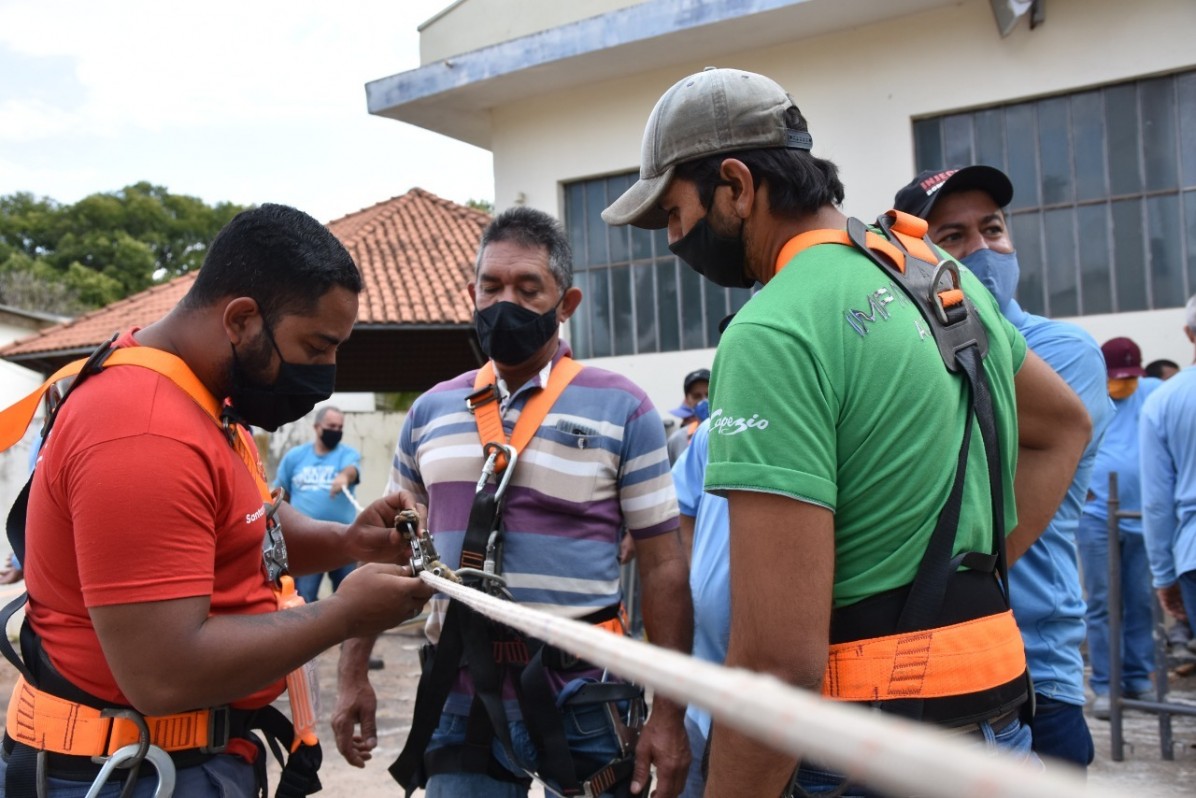 A Prefeitura promoveu o treinamento de trabalho em altura dentro da Norma Regulamentadora (NR 35).