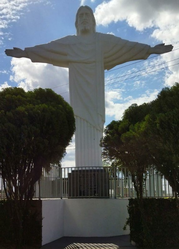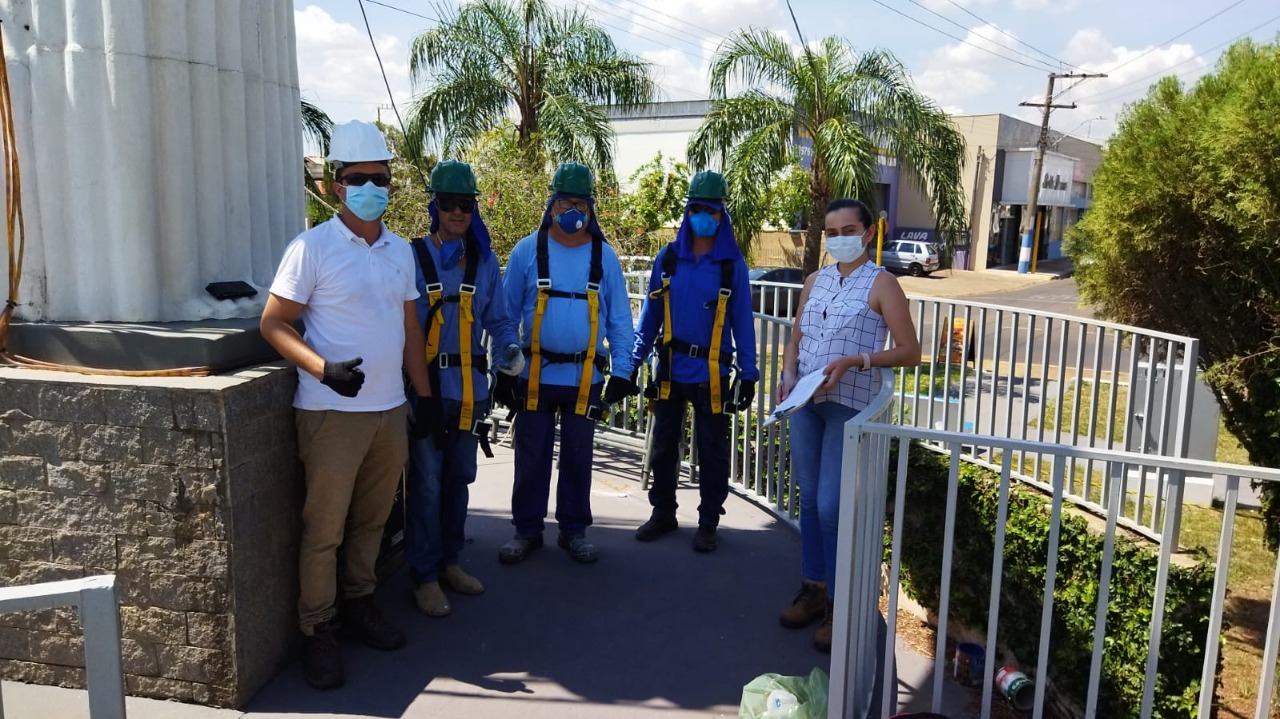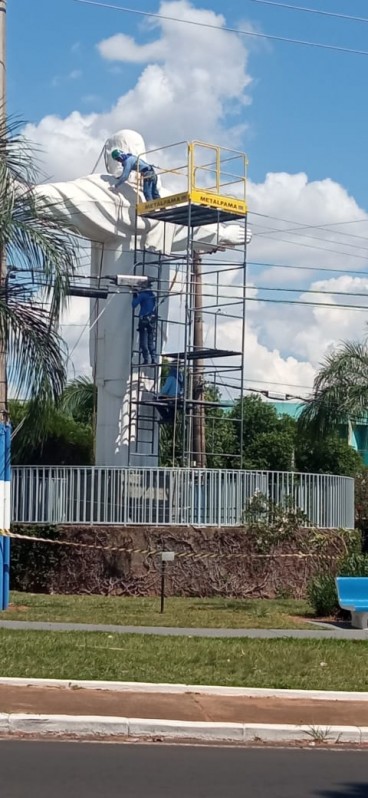 Após a administração municipal promover capacitação e aquisição de equipamentos de proteção aos servidores públicos municipais que realizam trabalho em altura foi possível à Prefeitura de Osvaldo Cruz a repintura do Cristo Redentor do Jardim das Bandeiras.