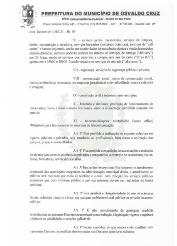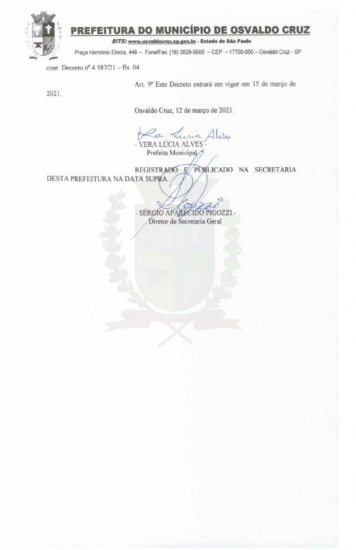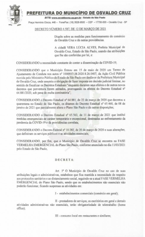 A Prefeitura de Osvaldo Cruz editou novo decreto para alinhamento de regras com a nova Fase Vermelha Emergencial decretada pelo Estado de São Paulo.