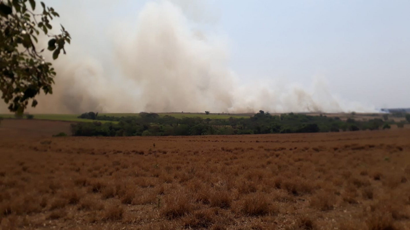 Com a vegetação seca, ventos e a umidade do ar muito baixa nesta época do ano, a cultura de cana tem muita palha e isso tem dificultado bastante o trabalho de combate às chamas.