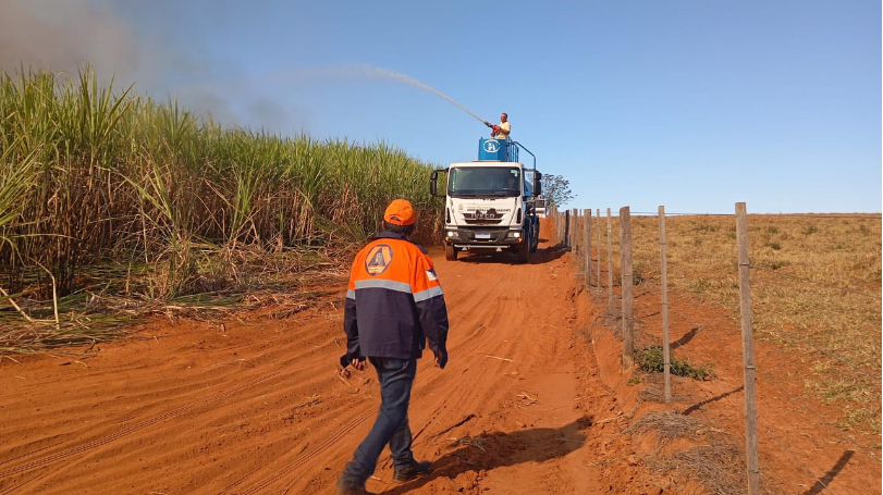 Equipe da Defesa Civil de Osvaldo Cruz, caminhões da Usina Califórnia e apoio de veículos pipa das prefeituras de Inúbia Paulista e Salmourão já atuavam no combate ao incêndio, quando chegou também uma equipe do Corpo de Bombeiros de Osvaldo Cruz.