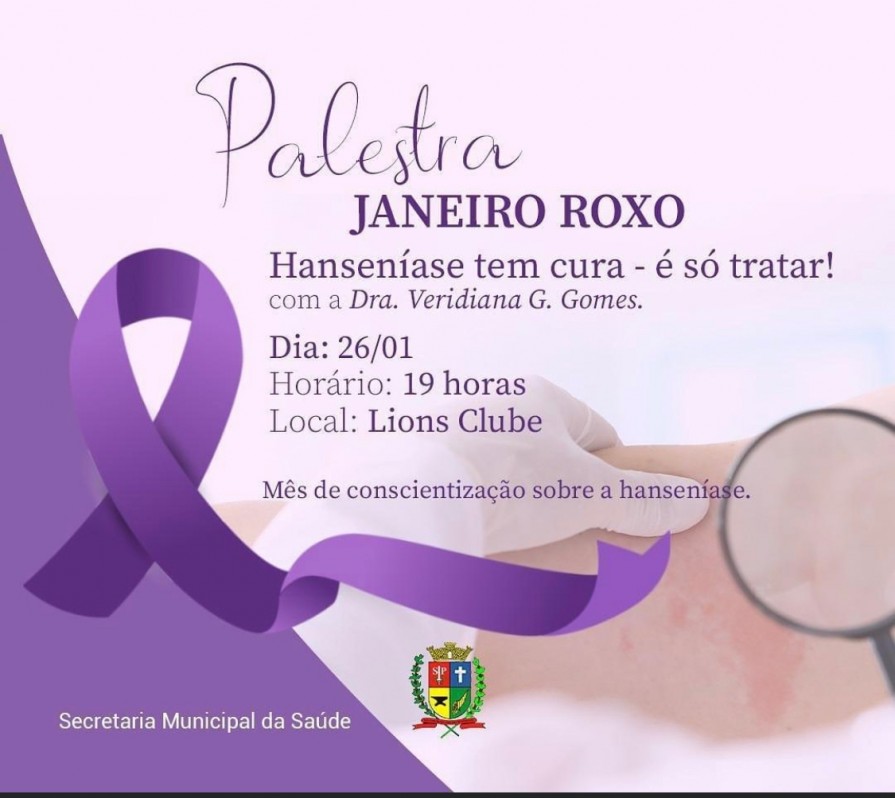 A palestra fará parte do cronograma de atividades do mês “Janeiro Roxo”, que é de conscientização quanto à prevenção e tratamento da hanseníase.