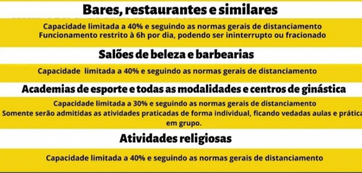 Os estabelecimentos deverão tomar o cuidado de manter mesas distantes e locais arejados, observadas as demais cautelas sanitárias.