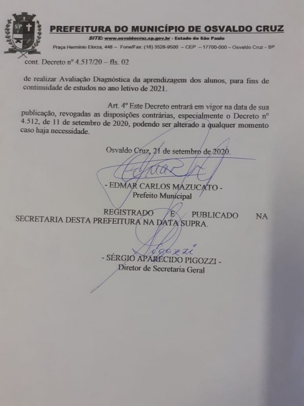 Leny Scramin destacou o apoio do Prefeito de Osvaldo Cruz, Edmar Mazucato, com toda Rede Municipal de Ensino, e falou sobre o decreto que já está publicado. “O Prefeito Edmar Mazucato foi solidário com as ações que fizemos na Secretaria da Educação, ele é muito presente com nossa Rede Municipal de Ensino, e após ver todo nosso trabalho com dados de famílias e conselhos, ele editou o decreto que já está publicado que as aulas serão retomadas somente em 2021. Lembrando que as aulas remotas e atividades que vão para as casas das crianças, vão continuar com a mesma sistemática que o professor está montando e entregando para as famílias.”, finalizou.