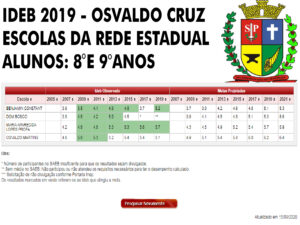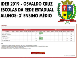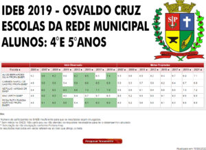 As escolas da Rede Municipal de Ensino de Osvaldo Cruz obtiveram nota acima do planejado no IDEB 2019. Os dados foram divulgados nesta terça-feira (15), pelo INEP. Com nota de 6,9, os alunos dos 4º e 5º anos, ficaram acima da meta de 6,7 estabelecida para 2019, e próximo da meta de 2021, que é de 7,0.