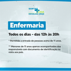 A Santa Casa de Osvaldo Cruz muda, a partir desta sexta-feira (14), os horários de visitas a pacientes internados.
