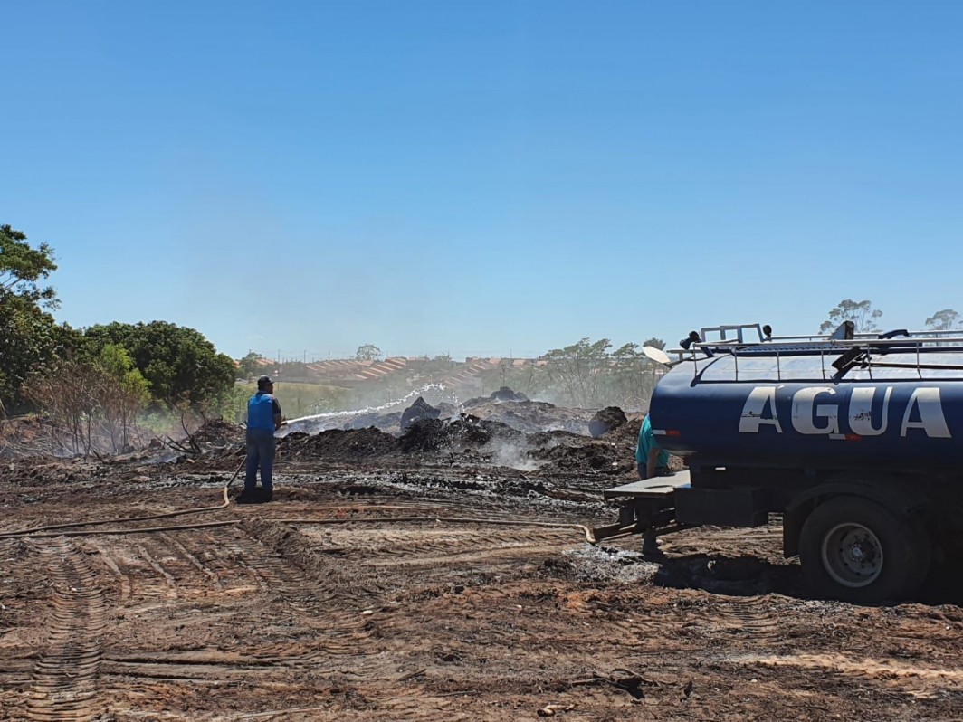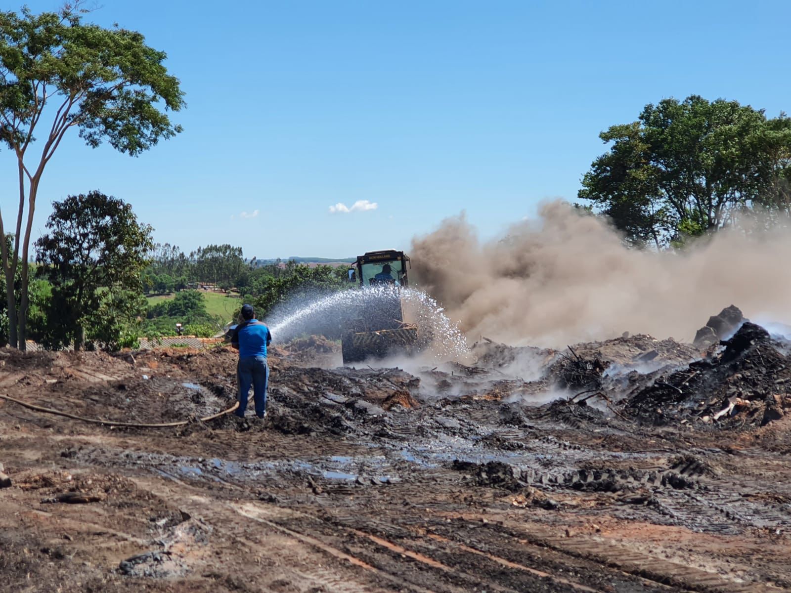 Após praticamente 15 dias, as condições do tempo e maquinários trabalharam durante toda a manhã deste sábado resolvendo o problema de fumaça no antigo Ecoponto Municipal, onde houve recentemente um incêndio criminoso que queimou restos de árvores e materiais de podas de árvores.