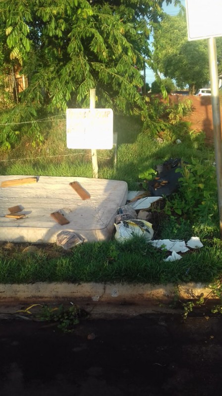 Em uma rua do bairro próximo ao “parquinho infantil”, até um colchão velho foi descartado de forma irregular.