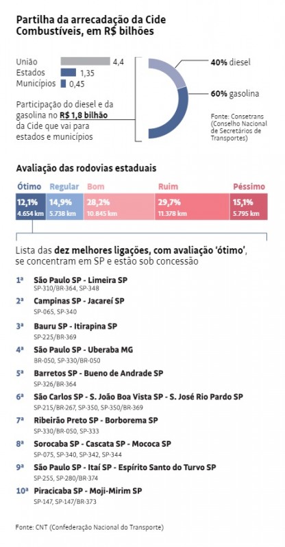 Segundo ele, a maior parte dos estados conta exclusivamente com a arrecadação da Cide para fazer a gestão da malha rodoviária.
