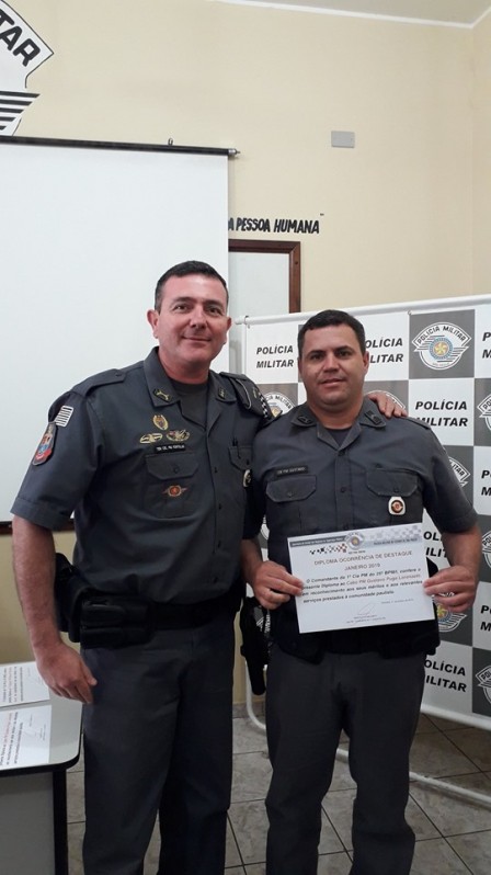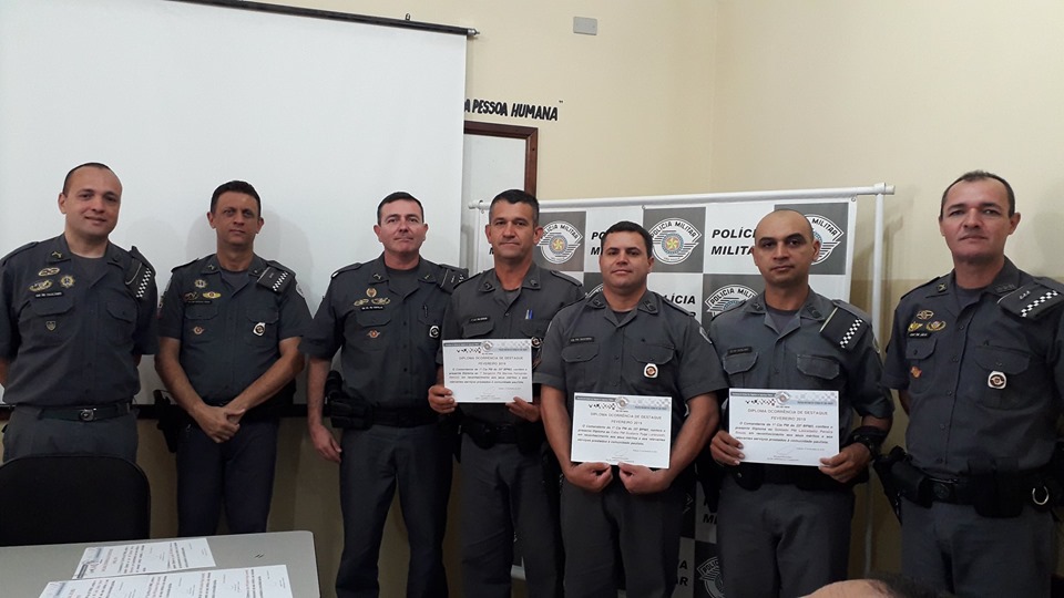 O Comandante Capitão PM Cavalcante homenageou os policiais com diplomas de PM do Mês e Ocorrência de Destaque, referente aos meses de janeiro, fevereiro, março e abril de 2019.