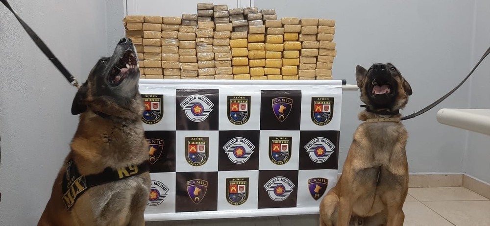 Dentro do veículo, no porta-malas, foram encontrados 114 tijolos de maconha, que somados pesaram 88 quilos.
