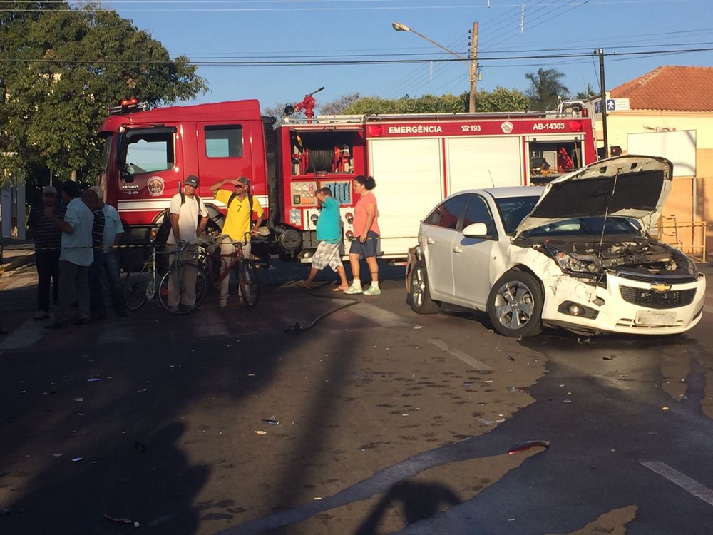 De acordo com a PolÃcia Militar, a viatura da Unidade de Resgate do Corpo de Bombeiros seguia sentido centro ao bairro, passou no sinal vermelho com o giroflex ligado e a sirene acionada, quando o Cruze que vinha em sentido contrário, veio a colidir com o veÃculo do Corpo de Bombeiros