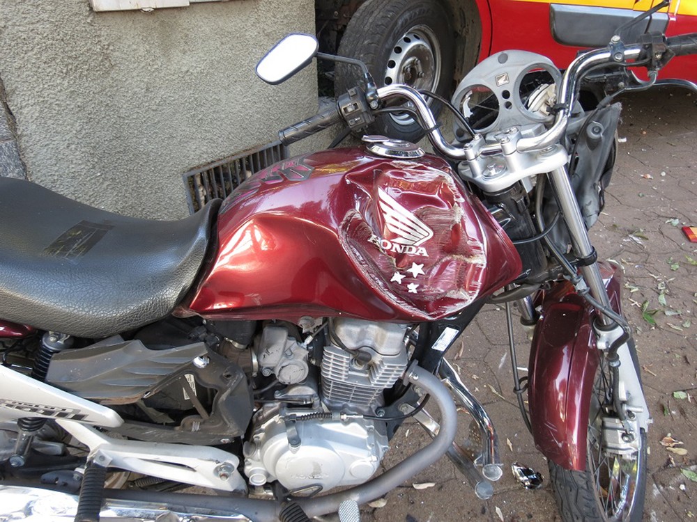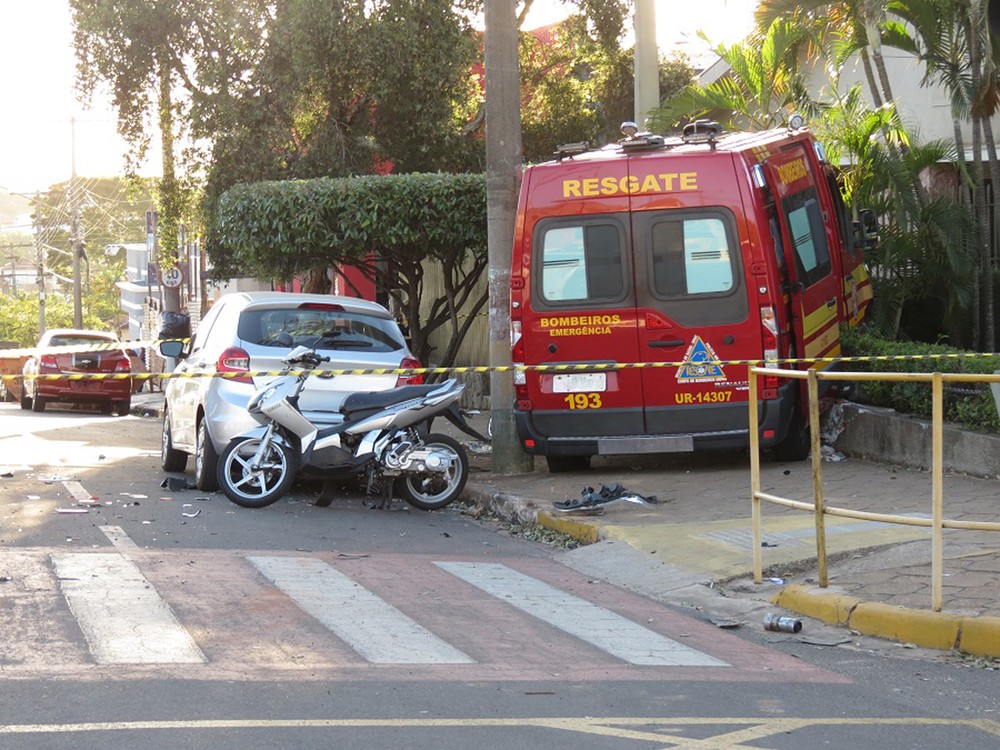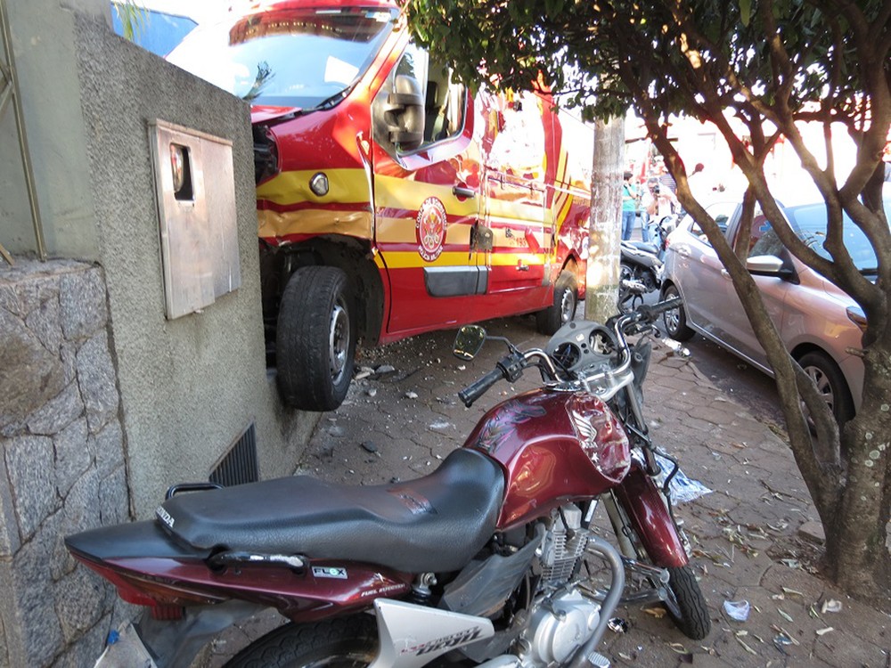 Com o impacto da batida, a Unidade de Resgate do Corpo de Bombeiros acabou atingindo duas motocicletas e um Ford KA, que estavam devidamente estacionados, subiu na calçada e atingiu a mureta de concreto do jardim de um consultório médico.