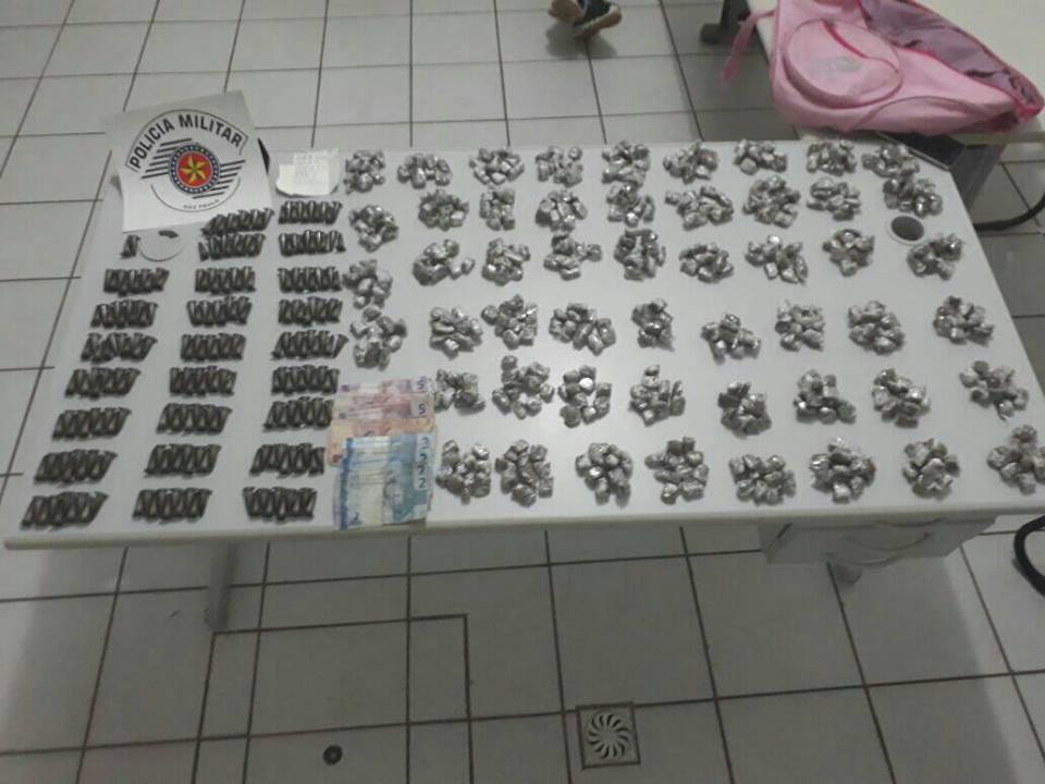 Um adolescente de idade não divulgada foi detido com muita droga na noite de terça-feira (31) na Vila Barros, zona Norte de MarÃlia. Com ele foram apreendidos 512 porções de maconha, 252 de cocaÃna e R$ 40 em dinheiro.