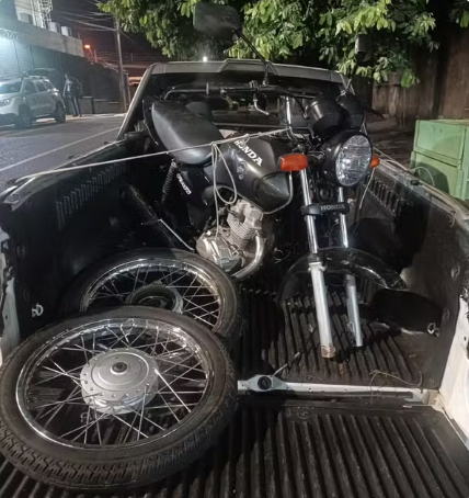 Diante dos fatos, os oficiais foram até o local indicado pelo suspeito, onde localizaram a moto sem os pneus.