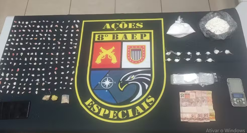 Na residência indicada pelos populares, os agentes encontraram na grama do quintal 12 invólucros plásticos transparentes com cocaína.