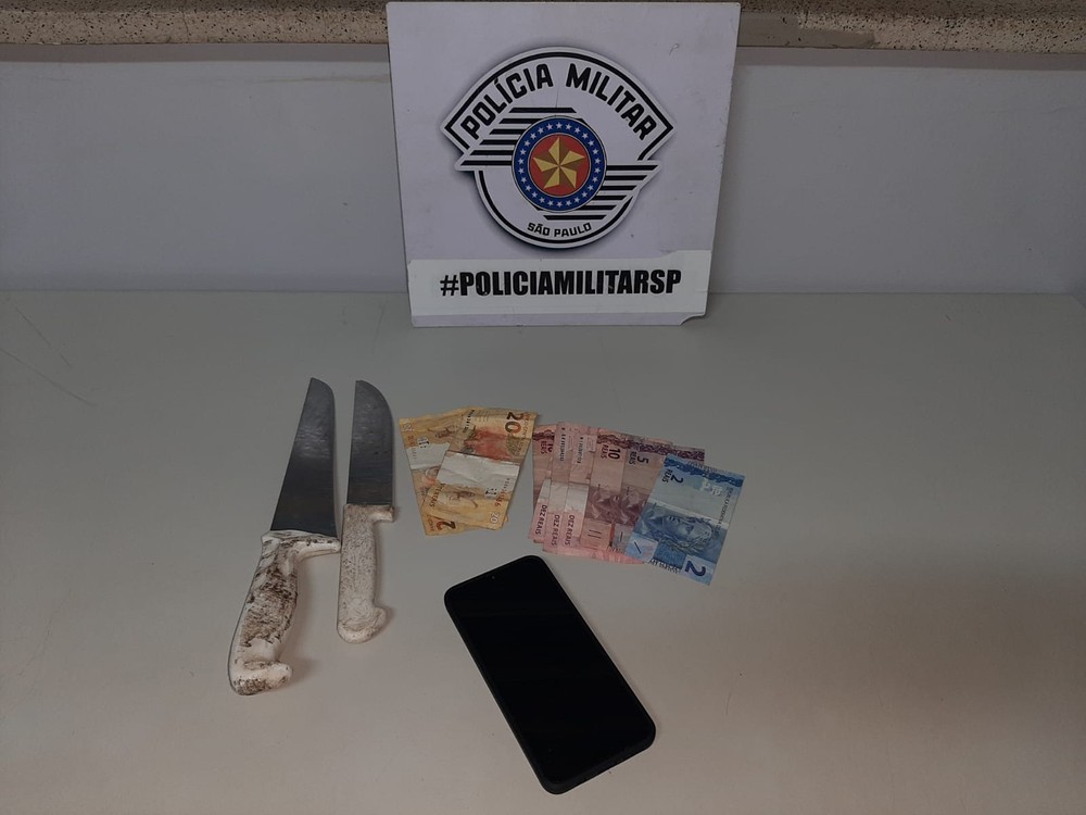 Duas facas, um celular e R$ 97 foram apreendidos.