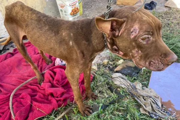 Durante a ação, os policiais encontraram um cachorro com magreza excessiva e sarna. Além disso, foi constatado que o animal estava sem água e alimentação disponíveis.