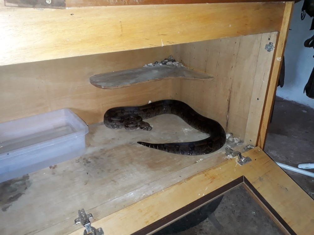 A serpente foi localizada e o homem afirmou que não tinha autorização para manter o animal em cativeiro. Ele foi autuado em R$ 500.