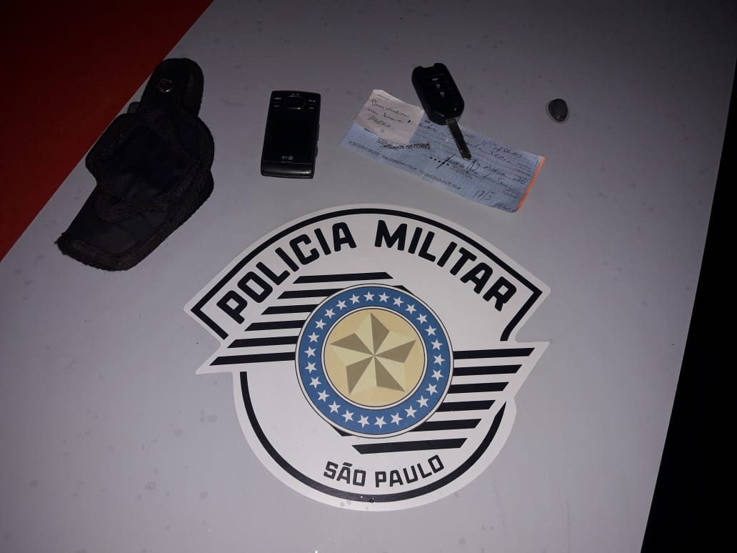 Em revista pessoal foi localizado com o menor J.L.V., um cheque do Banco Itaú, no valor de R$ 550,00 e uma chave de um veículo Civic.