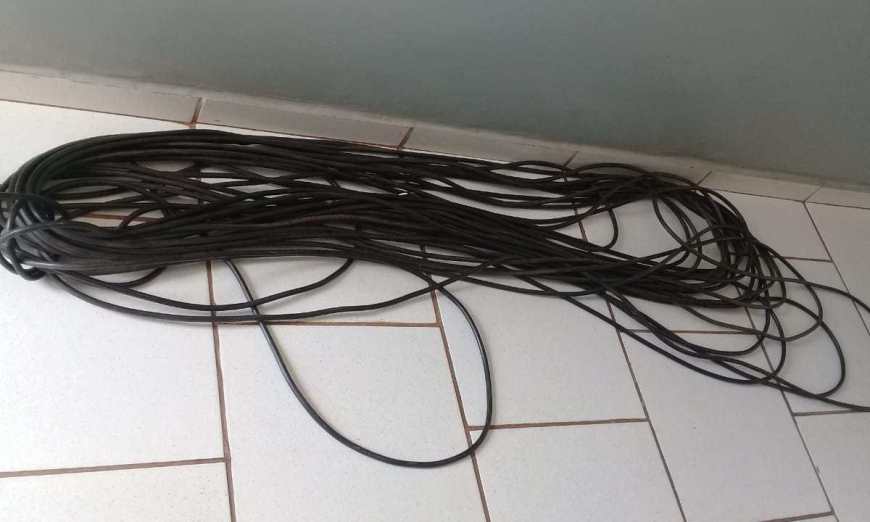 "Já no quintal da residência, foram localizados 60 metros de cano 48 milímetros. 144 metros de cano de 3/4, 60 metros de fios e uma bomba de poço artesiano sendo que ao serem indagados sobre a origem dos objetos, os dois indivíduos afirmaram que haviam adquirido em troca de serviços prestados a um proprietário rural da cidade", explicou o Sargento D'Aquino.