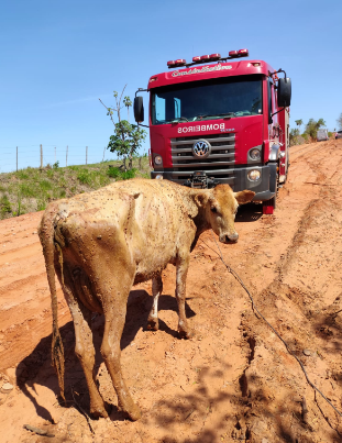 O Corpo de Bombeiros de Osvaldo Cruz foi acionado por volta das 14h30 desta quinta-feira (23) para socorrer uma vaca leiteira que havia ficado atolada em uma área de brejo.