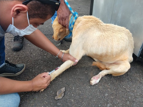 O cachorro foi encaminhado ao Centro de Controle de Zoonoses (CCZ) de Presidente Prudente, onde passou por atendimento veterinário.