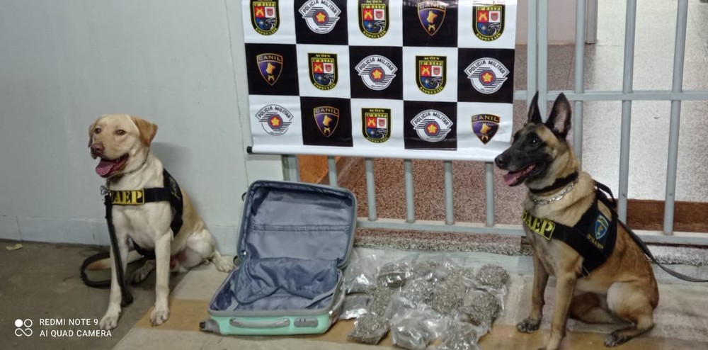 Conforme a equipe do Batalhão de Ações Especiais de Polícia (Baep), o coletivo tinha como linha Campo Grande (MS) a Campinas (SP). Com apoio do Canil, os cães Maila e Tobias farejaram 13 embalagens da droga skank em uma mala de viagem, que pesaram 3,2 quilos.