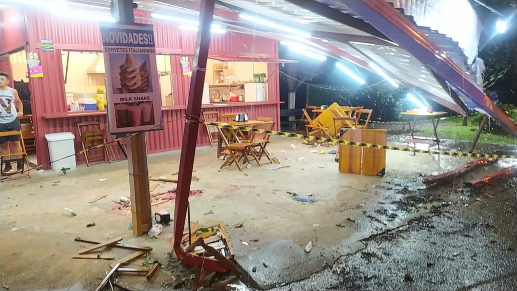Antes de atingir a lanchonete, o veículo bateu em um carro e uma motocicleta. A condutora da moto sofreu fraturas na perna e no pé. O motorista da caminhonete também se feriu.