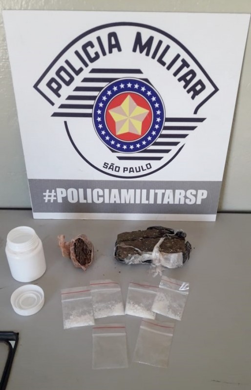 Com a denúncia, policiais solicitaram apoio do Canil Setorial do 25° BPM/I (Batalhão de Polícia Militar do Interior), e os cães de faro "Emy" e Phantro", sinalizaram a existência de drogas no local. Ao todo foram localizados 118 gramas de maconha e 4 gramas de cocaína, distribuídos em 4 sachês que estavam dentro de um recipiente plástico.