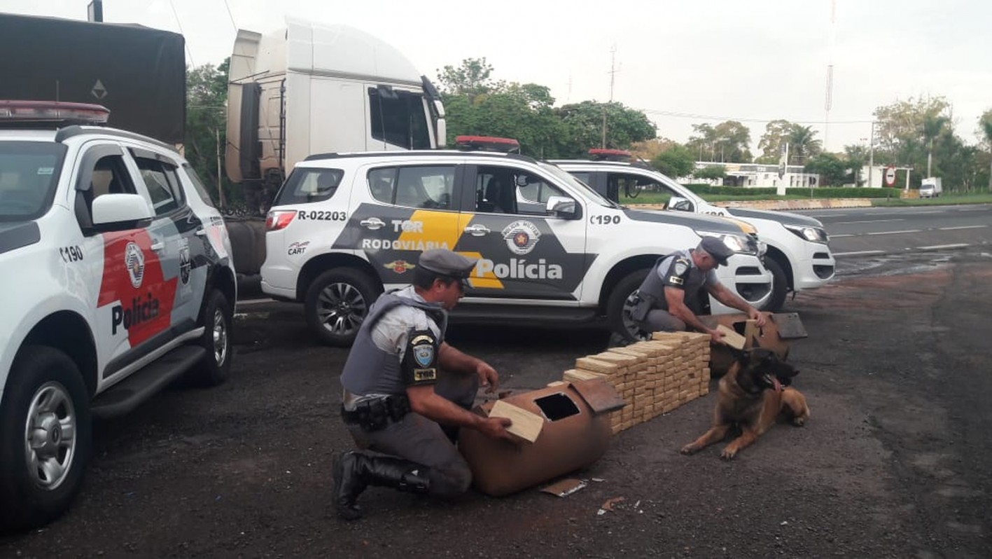 Um cão farejador do Canil do 8º Batalhão de Ações Especiais de Polícia (Baep) de Presidente Prudente localizou mais de 1635 quilos de cocaína escondidos em dois cilindros de ar adulterados, de uma carreta com placas de Sorriso (MT), que tracionava dois semirreboques.