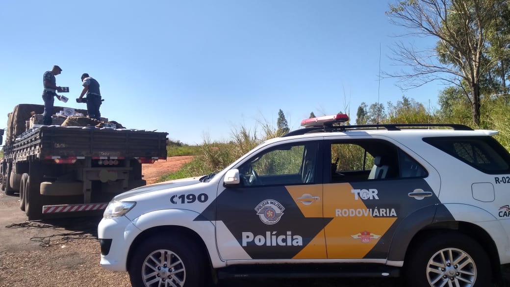 Um caminhão carregado de material eletrônico é apreendido na tarde desta terça-feira (19), Km 003 da SP 563 - Rodovia General Euclides de Oliveira Figueiredo, em Mirante do Paranapanema.