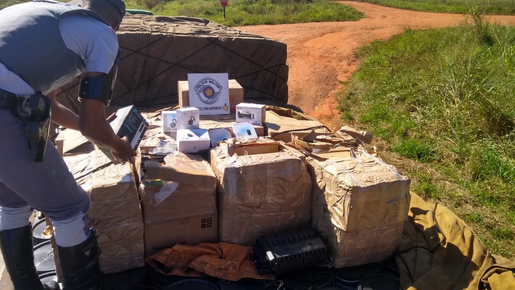 Os policiais fizeram uma vistoria minuciosa no interior do caminhão, e foram encontrados 13 volumes, ou seja, 1.000 itens sem nota fiscal, dentre eles, roteadores, impressoras, antenas, câmeras de vÃdeo e monitores de computadores.
