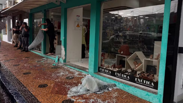 No local, houve danos nas colunas da estrutura e vidros quebrados. A perícia esteve no local e o caso deve ser investigado.