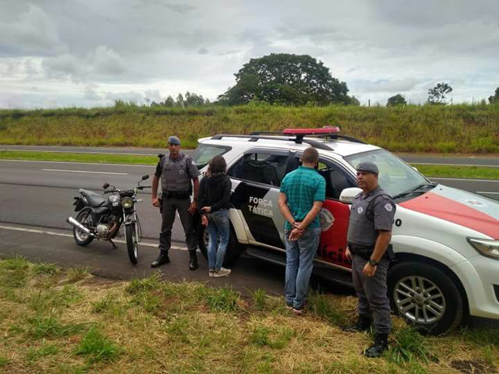 Uma equipe de Força Tática da PolÃcia Militar, em operação para combater o tráfico pela Rodovia Angelo Renna, abordou uma motocicleta com placa de Osvaldo Cruz, ocupada por um casal.
