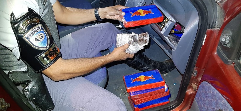 Ao realizar minuciosa busca veicular, os policiais encontraram nove tabletes de cocaína, com 9,316 quilos, e outras nove porções de haxixe, que totalizaram 832 gramas da droga.
