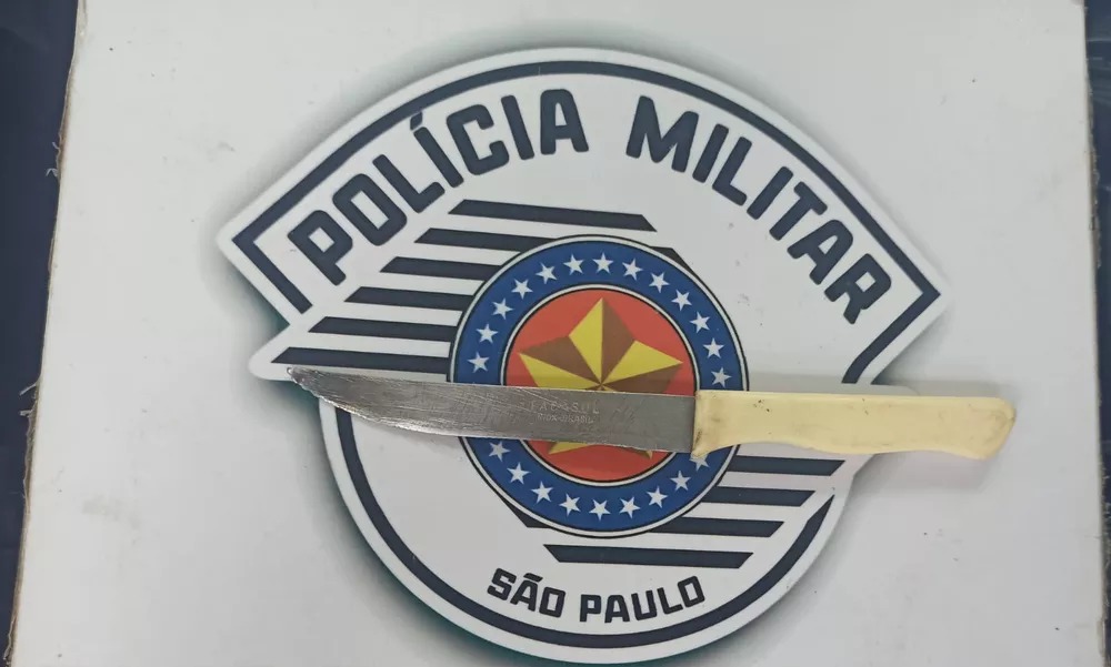 A equipe foi acionada por volta das 10h35 e, assim que chegou ao local, presenciou o homem ainda “muito exaltado e com a faca na mão”.