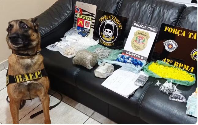 Os agentes também apreenderam dois aparelhos celulares, um em cada um dos outros dois imóveis, para dar continuidade às investigações. O canil do 8º Batalhão de Ações Especiais de Polícia (Baep) participou da operação.