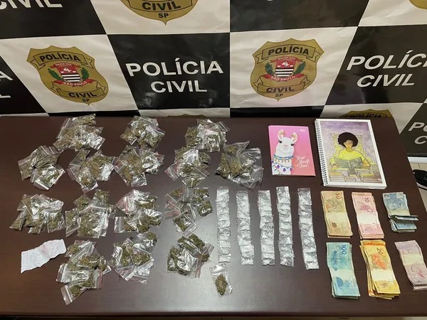 Os policiais foram até uma residência e, durante as buscas, apreenderam mais de 140 porções de maconha, 50 porções de cocaína, aproximadamente R$ 2,5 mil reais, além de anotações “relacionadas ao tráfico de drogas”.