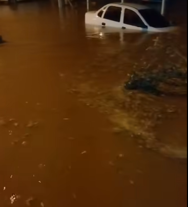 Mais tarde os bombeiros foram chamados na Rua Marechal Rondon, local onde tradicionalmente ocorre inundação com as fortes chuvas, onde trabalharam por causa de quatro veículos que estavam no local, acabaram arrastados pela enxurrada e bateram uns nos outros.