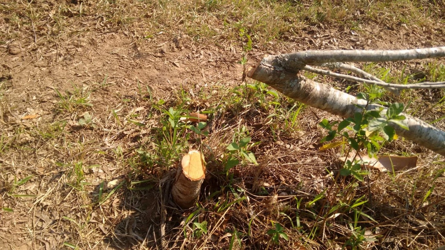 Em vistoria pela propriedade, os policiais constataram que houve a supressão, através de corte raso e provavelmente envenenamento, de 39 árvores nativas das espécies amendoim-bravo, leiteiro e monjoleiro.