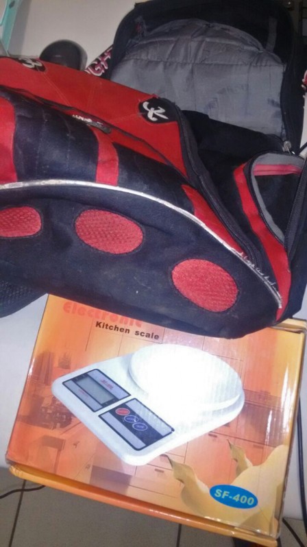 Já no local, os policiais localizaram em meio à vegetação, uma mochila de cores, vermelha e preta. Ao verificar o que havia no interior da bolsa, a equipe encontrou uma balança de precisão e meio tijolo de crack, que pesou 632 gramas.