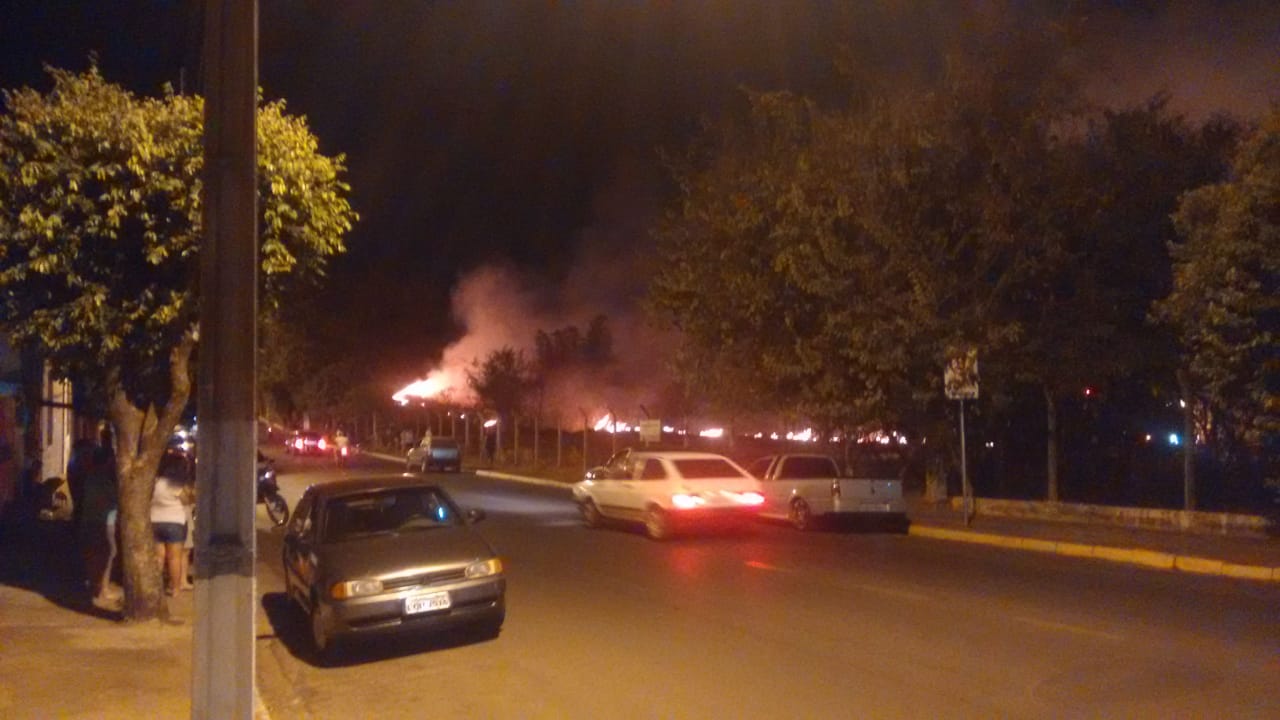 O Corpo de Bombeiros atendeu na noite deste domingo, a ocorrência de um incêndio de grande proporção que atingiu uma área particular próximo ao Fórum de Osvaldo Cruz.