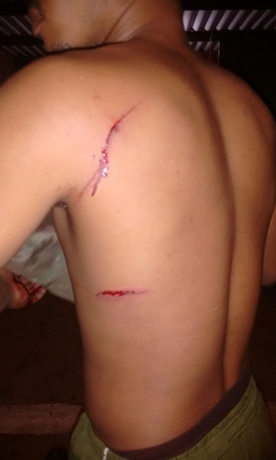 Segundo a PolÃcia Militar, a vÃtima, Everton, sofreu lesões leves na mão e nas costas. Segundo a PM o autor está foragido.