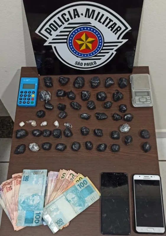 Após diversas denúncias, um mototaxista foi abordado na Rodovia Comandante João Ribeiro de Barros (SP-294), em Tupi Paulista (SP), e, com ele, os policiais encontraram cinco porções de crack, a quantia de R$366,00 em espécie, um celular e uma máquina de cartão.