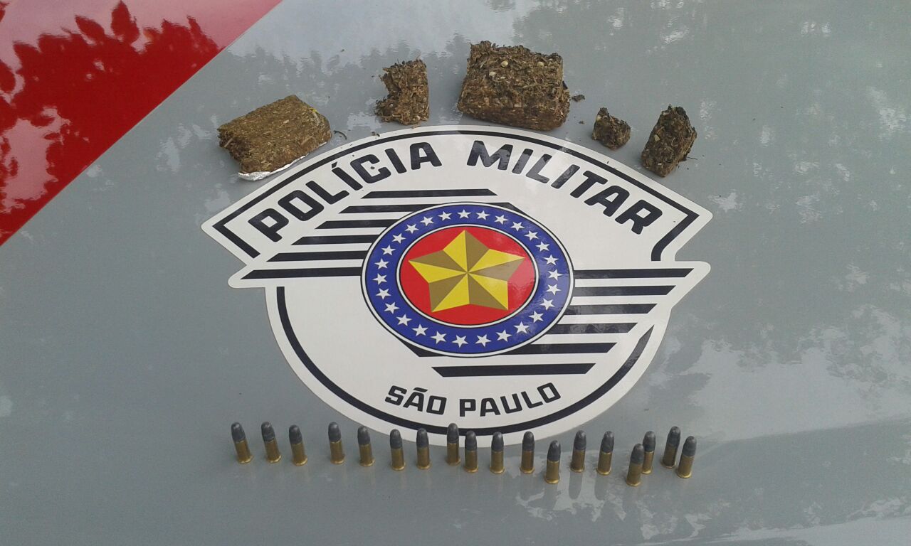 Dois indivÃduos presos, 18 munições de calibre 22 e120g de maconha foram apreendidas.