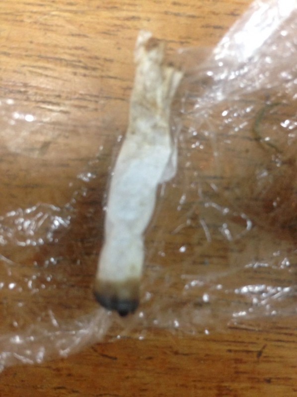 Foi encontrado também um cigarro da mesma droga, ainda aceso, que tinha sido jogado.